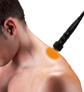 皮膚に非絶縁の電極をあてる方法です。非絶縁の電極をあてることにより、皮下に深い部分に届く熱を扇形に発生させ深部加温します。抵抗により皮膚の下、深部に広く伝わる電流は、ダイエット・スリミング皮下脂肪と堆積脂肪やセルライトに効果的です。