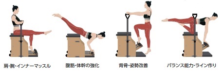 省スペース設計でありながら30種類以上のエクササイズに対応する多機能ピラティスマシン。